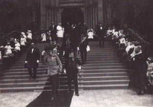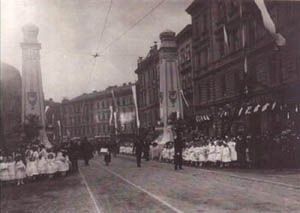 V dubnu 1907 Jeho Veličenstvo navštívilo na delší dobu královské hlavní město Prahu a dne 24. dubna naše milé Královské Vinohrady. Tento den očekávala školní mládež se svými učiteli vznešenou návštěvu. Nejživěji bylo v Palackého třídě /Francouzská ulice/, kdež byla postavena slavobrána, pak na Purkyňově náměstí, ulici Divišově a Žižkově. Mládež naše stála v Žižkově ulici. Slavností uvítání krále českého na půdě našeho města zástupci stalo se na Purkyňově náměstí /Míru/. Po návštěvě chrámu Páně /sv. Ludmila/ a po prohlídce novostavby městského divadla jelo Jeho Veličenstvo volným tempem ulicí Divišovou a Žižkovou, kdež vřele byl pozdravován školní mládeží a obecenstvem. Zde stanul u nové školní budovy /Na Smetance/ v ulici Žižkově /Italská/, kdež uspořádalo učitelstvo vinohradské Školskou výstavu se zřetelem k umělecké výchově. Při vstupu do budovy zapěla mládež škol vinohradských rakouskou hymnu. Panovník prohlédl si v přízemí oddělení mateřských škol, uměleckou síň, vzorný kabinet, kreslení žactva dle nových směrů a všude dával lichotivými slovy svou spokojenost najevo. Z okna vítací síně hledělo Jeho Veličenstvo na slavnostní sázení "císařské lípy" v Riegrových sadech a na staročeské tance školní mládeže a reje mnoha set dítek v malebné kroje oděných, což vše upoutalo Jeho milost na delší dobu ... Když panovník opustil výstavní budovu, aby pokračoval v jízdě do města Žižkova, zasadila mládež vinohradská strom věnovaný městu Královské Vinohrady. Mládež naší školy zasadila strom číslo 6 na památku K. H. Borovského /viz plánek stromů Riegrových sadů přiložen/. Školskou výstavu uspořádal školský výbor, jednatelem se stal Adolf Wenig. V užším výboru byli také spisovatel K. V. Rais a architekt Antonín Turek, autor školy.V roce 1906/7 c.k. okresní rada oznamuje a ukládá všem školám, aby c.k. radě oznamovali hostince, do nichž mládež chodí. Dále upozorňuje učitelstvo jakých prostředků vychovávacích po rozumu § 81 a 82 řádu školního a vyučovacího užívati možno. Zdravotní stav mládeže a učitelstva byl celkem dobrý, všichni členové sboru učitelského po celý rok téměř nezastonali. Mezi žactvem řádily hlavně spalničky a příušky.
