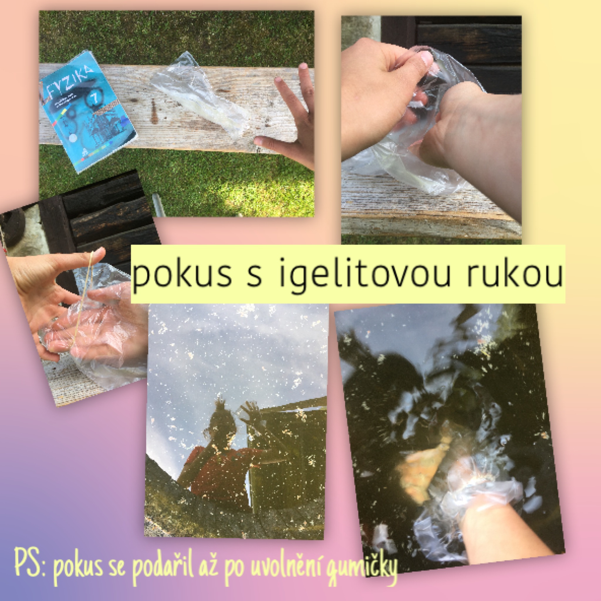 Fyzika v 7.B - pokus s igelitovou rukou (paní učitelka Hanzlíková)