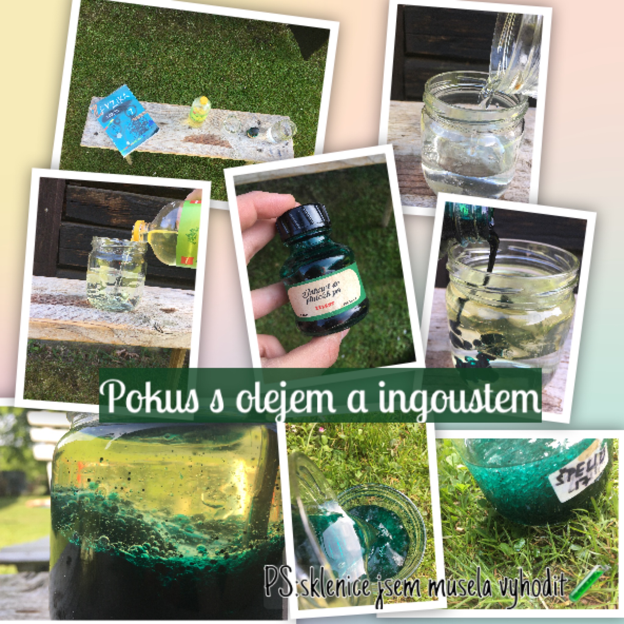 Fyzika v 7.B - pokus s olejem a inkoustem (paní učitelka Hanzlíková)