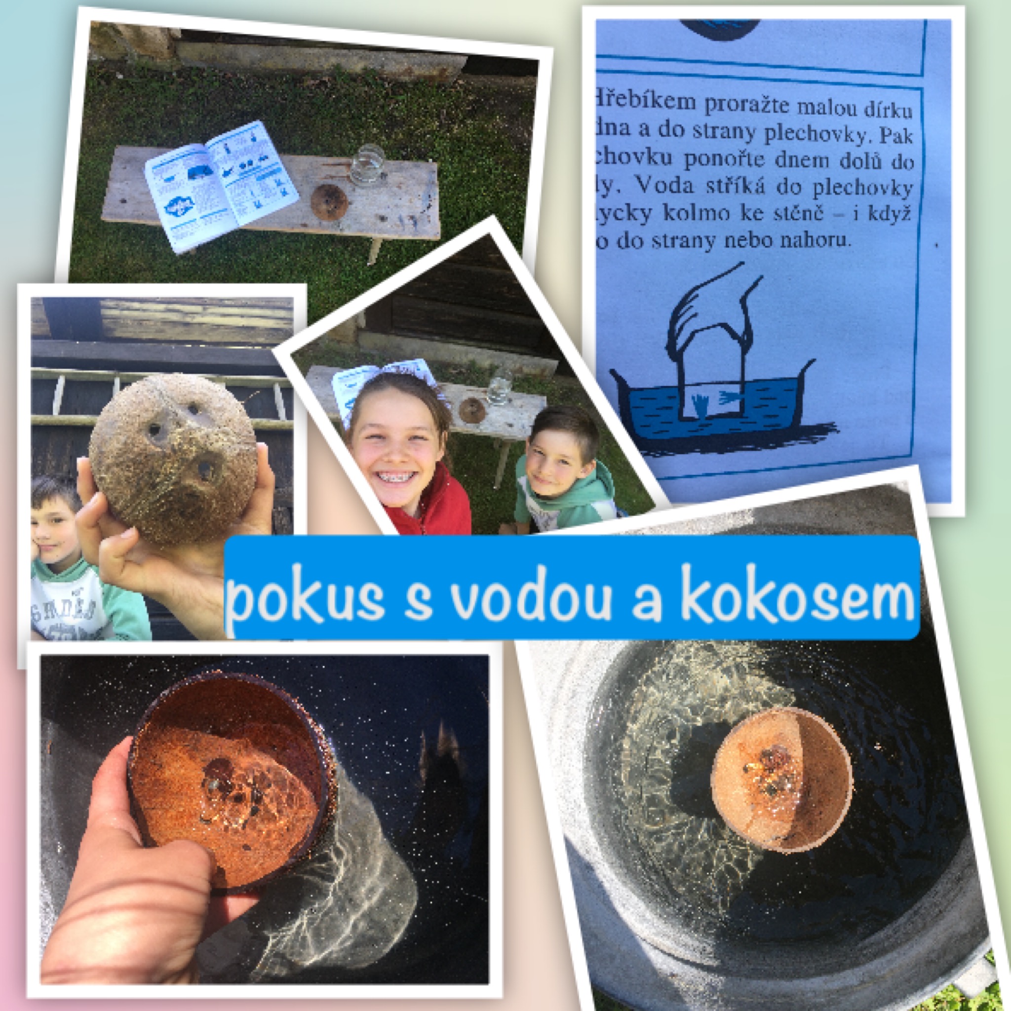 Fyzika v 7.B - pokus s vodou a kokosem (paní učitelka Hanzlíková)