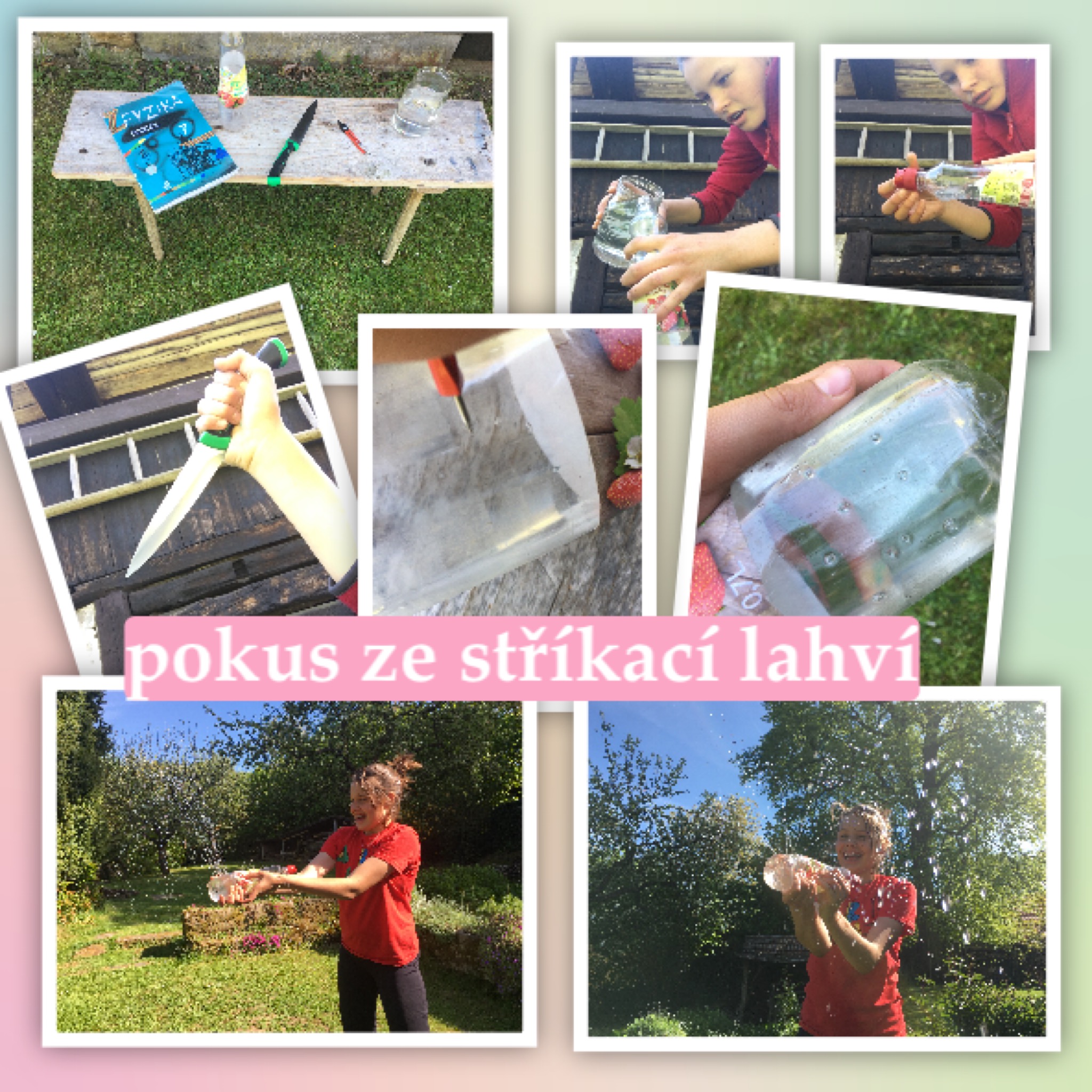 Fyzika v 7.B - pokus se stříkací lahví (paní učitelka Hanzlíková)