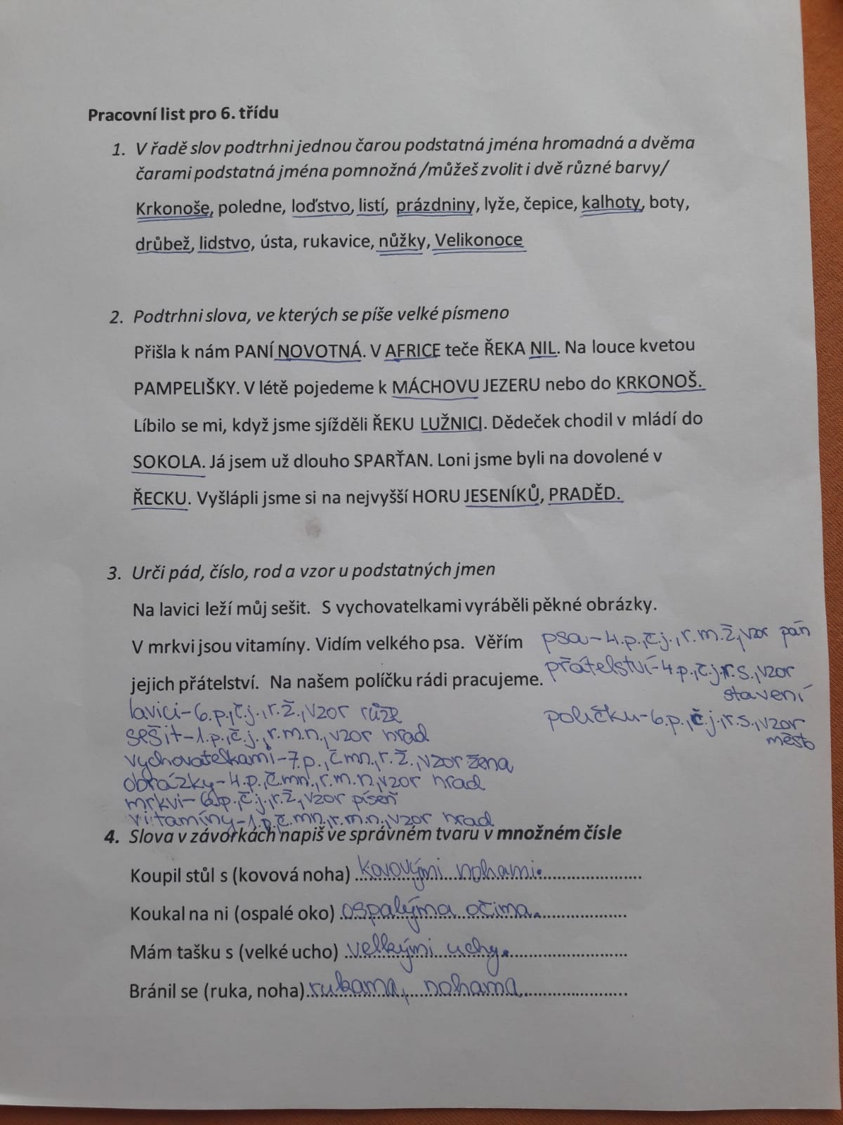 Český jazyk - pracovní list Rózy B (paní učitelka Havlíková)