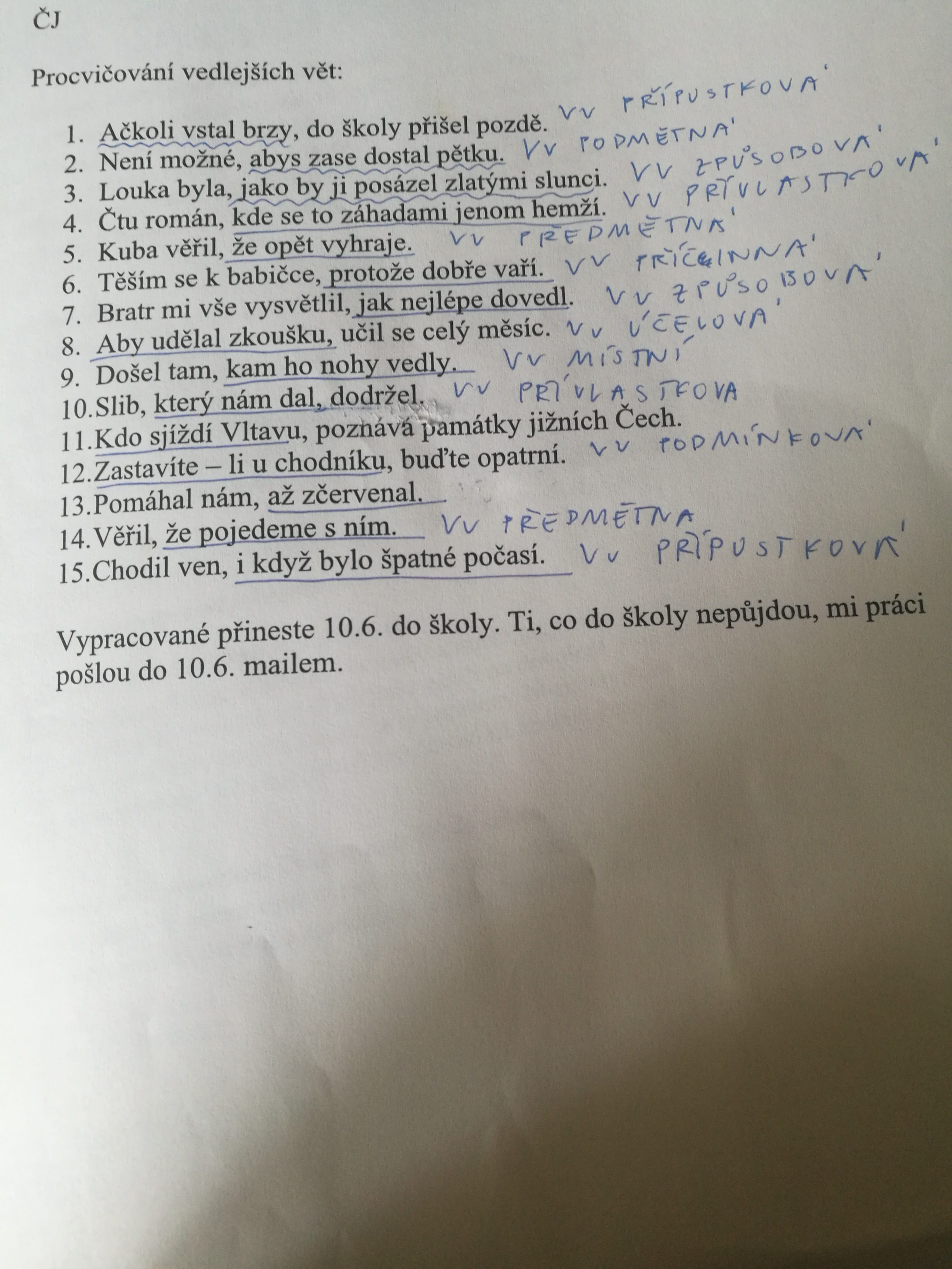 Český jazyk - práce Vojty Č (paní učitelka Havlíková)