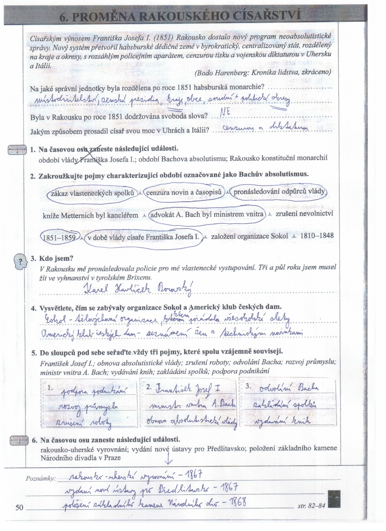Dějepis - pracovní list Týny M (paní učitelka Havlíková)