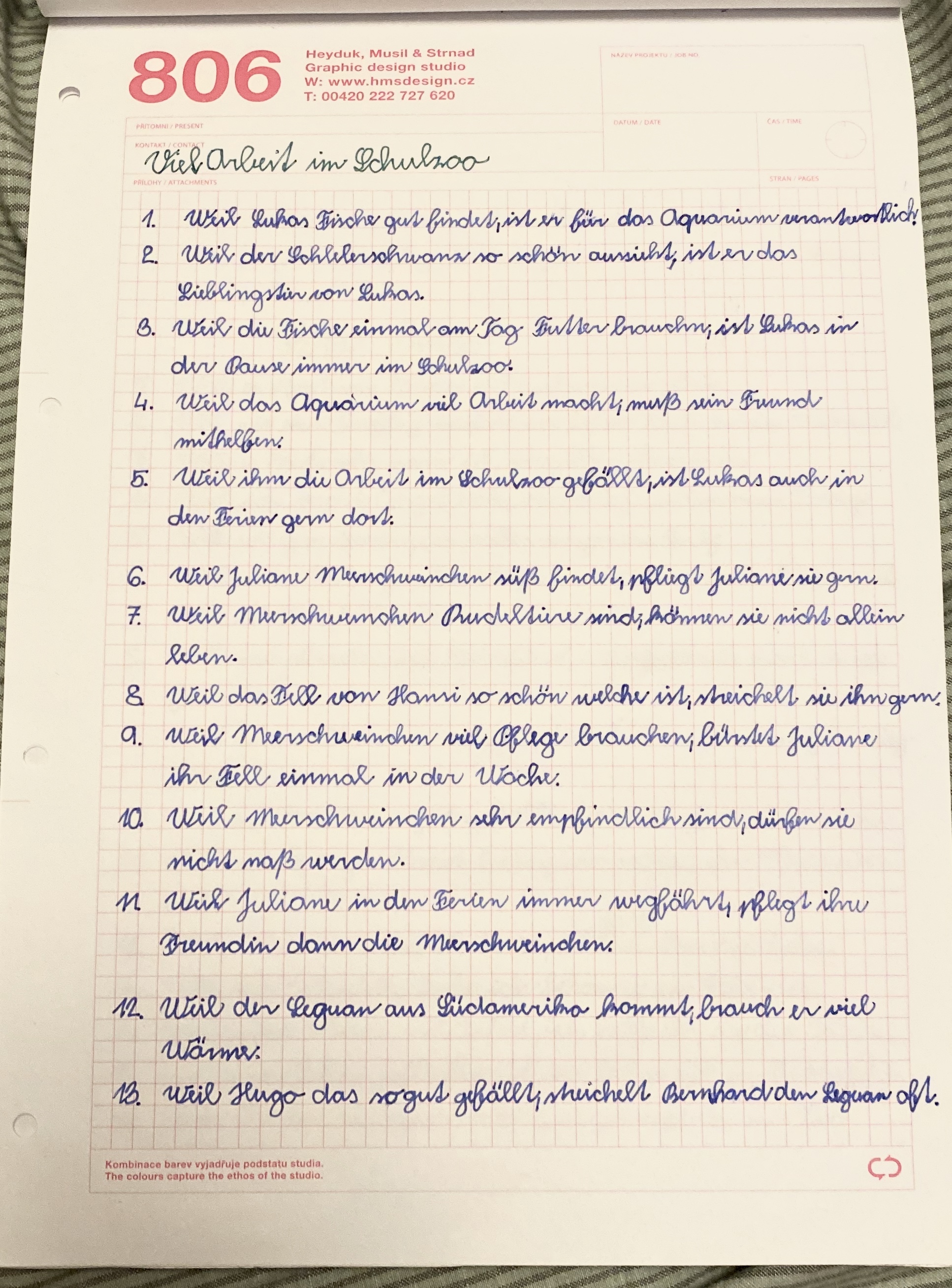 Německá koverzace - práce Kuby S (paní učitelka Trettner)