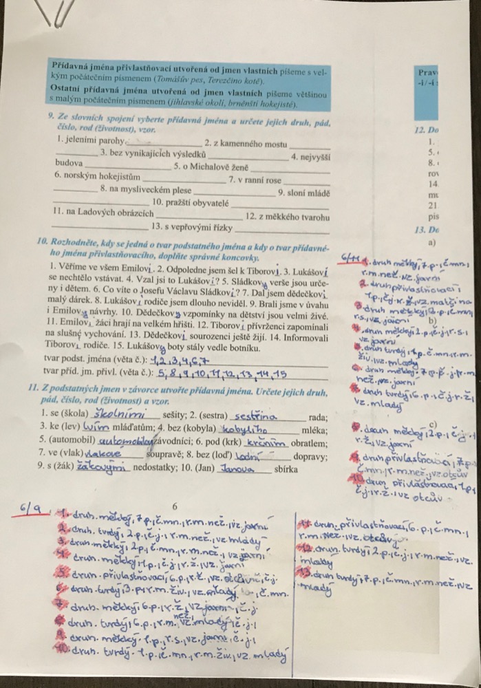 Český jazyk - pracovní list Radima V (paní učitelka Havlíková)